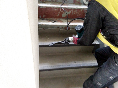 5つの工区のうち3工区は塗装工事と防水工事を施工中で共用廊下、階段では長尺シート工事の施工中です。来週からは4工区(共用廊下面)の外壁塗装を施工していく予定です。