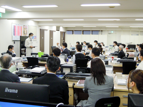 新しい方を迎え、社内美化委員会、お客様満足度委員会の活動報告からスタートしました。