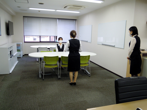 事務課では、よりクオリティの高い接客・電話対応を目指し、新しく仲間になった方にはロールプレイングで、研修を行い、教えられるそして教える両者のクオリティの向上も図っています。