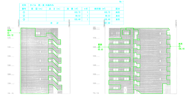 現地調査時に見落とし、図面にも表記のないシーリングの伸縮目地が拾いソフトで計算するとちゃんと数量に含まれているというようなことはありませんので、現地調査時に見落としないよう慎重に調査することが重要です。