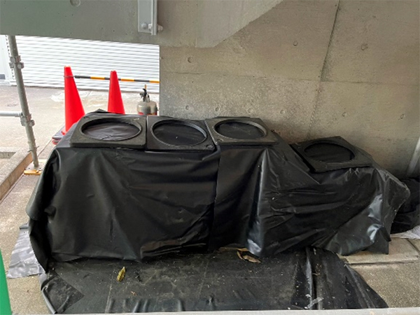 ■資材等が飛散しないよう資材置き場の整理整頓確認、資材のまとめと固定