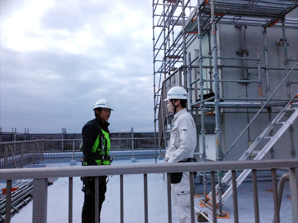 最後には協力業者の責任者と指摘箇所、改善点などの内容の打合せ、共有を行い、より安全な仮設工事の完成を行います。